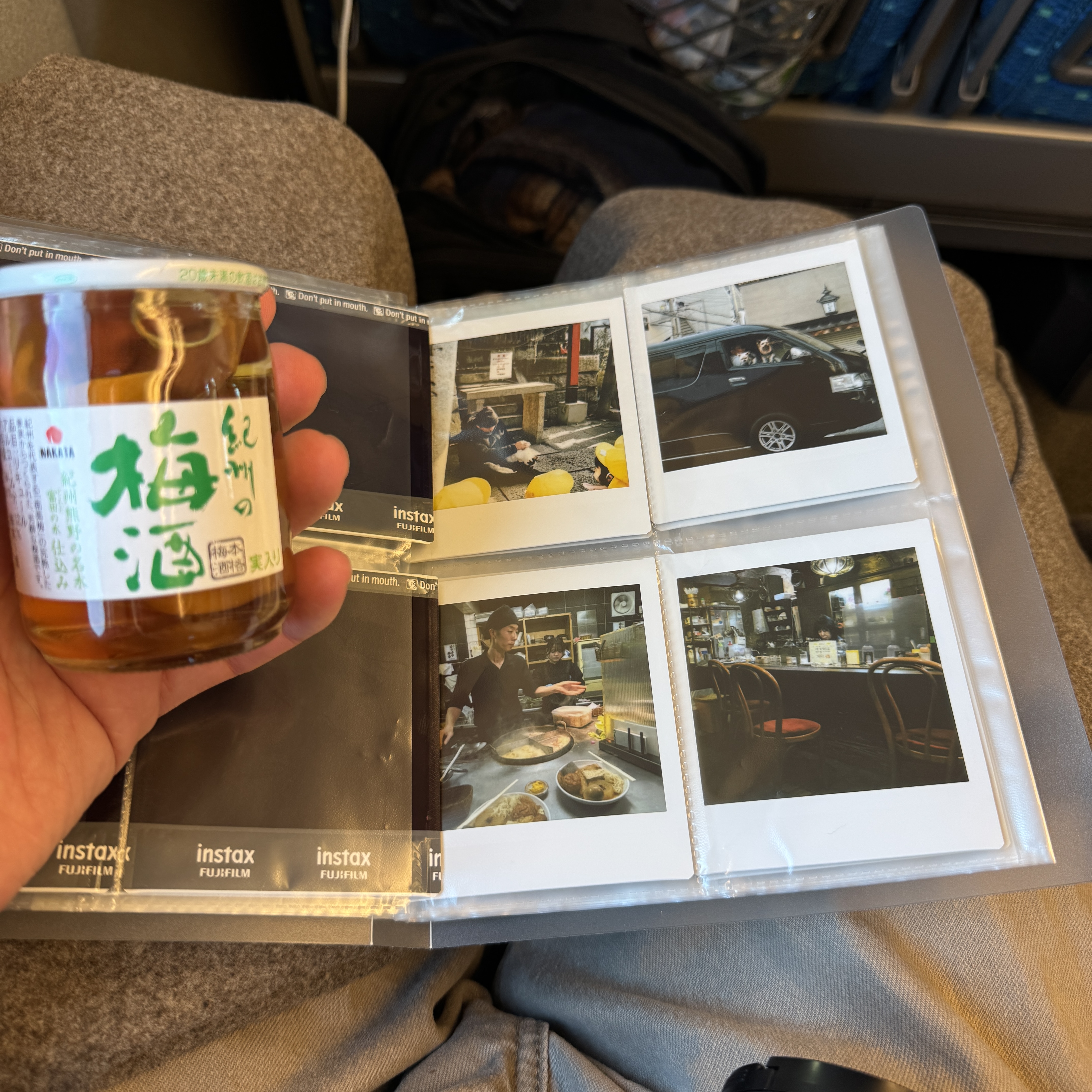 Printing photos to add to my album while drinking umeshu on the Shinkansen: